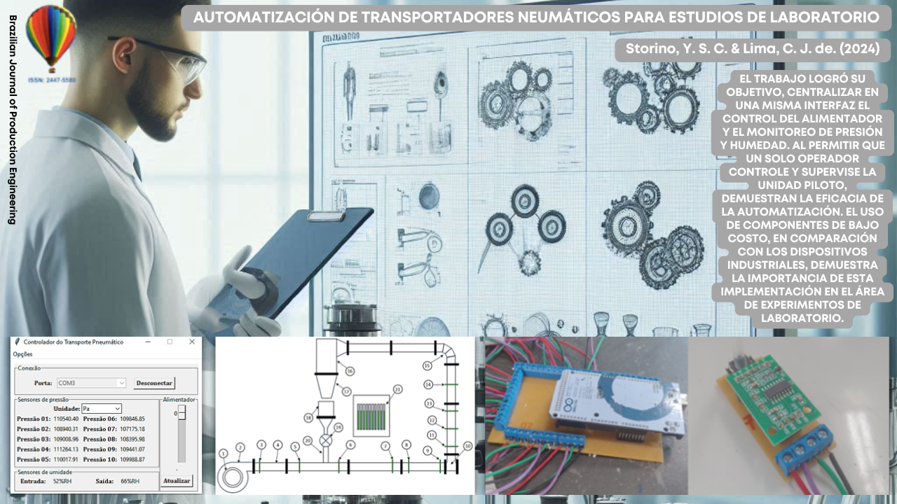 Estudos laboratoriais são necessários em diversas áreas e visam o aumento de eficiência em fabricação, produção, transporte e outras funções, sendo parte destes estudos feitos em universidades, assim tendo viabilidade o uso de novas tecnologias para auxiliar na execução destes desenvolvimentos. Este artigo tem como objetivo apresentar uma automação para transportadores pneumáticos voltada para estudos laboratoriais, com uso de tecnologias de baixo custo. Foi utilizada a plataforma Arduino no controle da automação, sensores de pressão MPS20N0040D-S e de umidade DHT11 para aquisição de dados, e um circuito de potência para controlar o alimentador de grãos, além de exibir os dados adquiridos e fornecer relatórios digitais desses. Os experimentos mostraram que foi possível ter um controle e monitoramento digital centralizado, com apenas um operador, com a capacidade de relatórios gerados com medições a cada segundo. Assim, foi possível verificar que o uso desta automação reduz o tempo para aquisição de dados, os operadores necessários para conduzir experimentos e erros passíveis dos operadores. Estes somados aos componentes de baixo custo demonstram a viabilidade da automação.